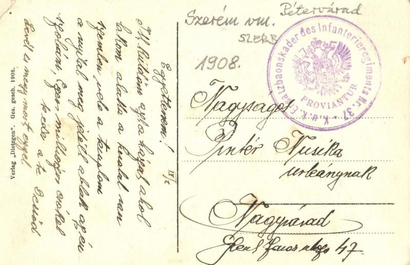Description: Újvidék, Novi Sad; Pétervárad (Petrovaradin), Strossmeyer utca / Strossmeyrova ulica / street + K.u.k. Ersatzbaonskader des Infanterieregiments Nr. 73. (EK)