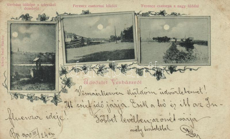 Verbász, Vrbas; Ferenc csatornai kikötő, kiadja Seidl Nándor / port, floral