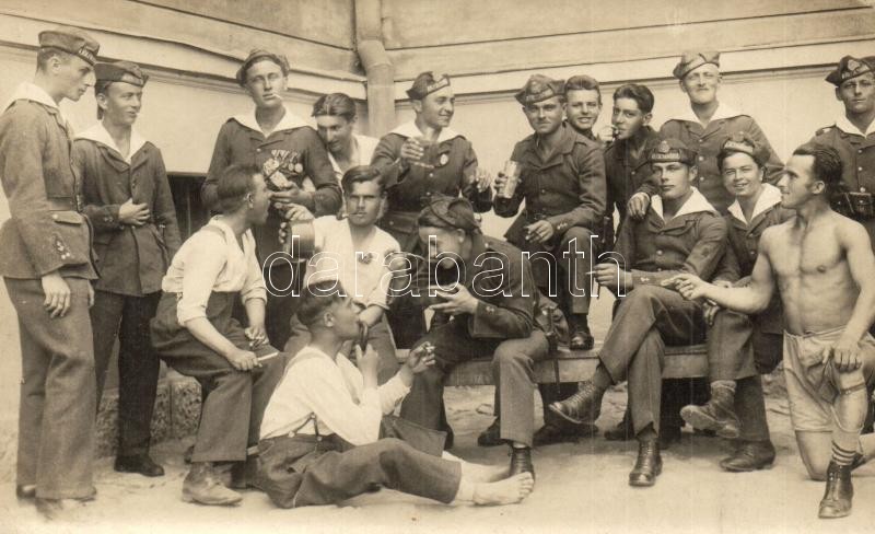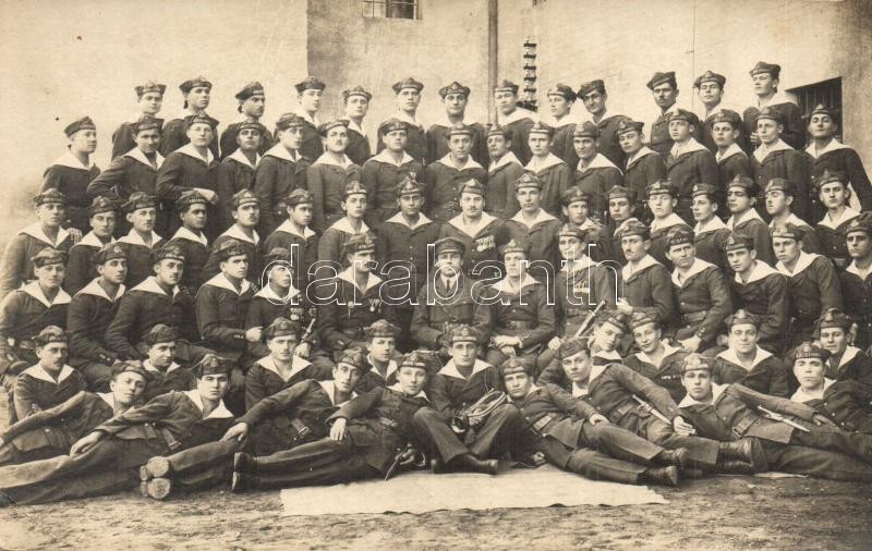 Description: 10 db 1920 és 1930 közötti fotó képeslap a Magyar Királyi Folyamőrség budapesti parancsnokságáról. Csoportképek és őrnaszádok (monitorhajók). Dunai Flottilla (Donau-Flottille) / 10 photo postcards of the headquarters of the Hungarian Danube Fleet river guards in Budapest from 1920-1930. Group photos and monitor ships