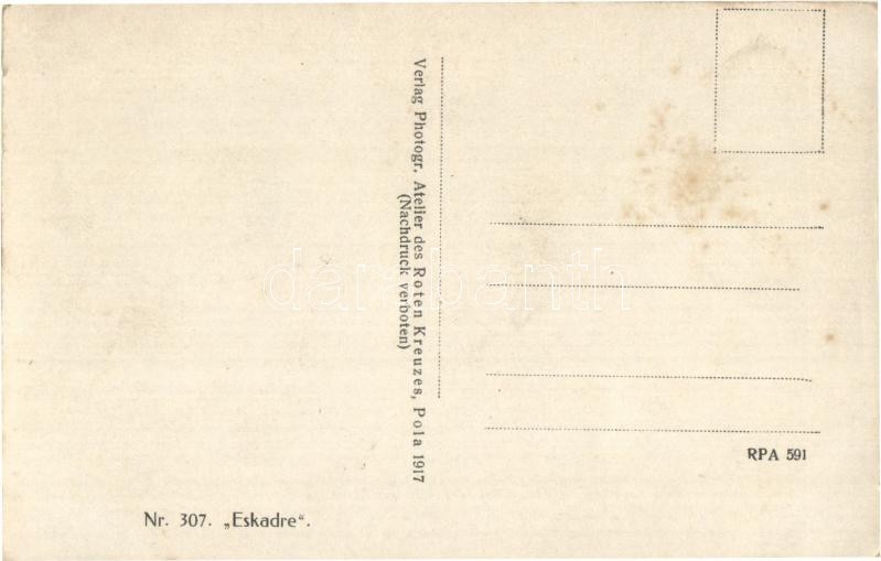 Description: Osztrák-magyar haditengerészet hajóraja; két Erzherzog Karl osztályú és egy Tegetthoff osztályú csatahajója / K.u.K. Kriegsmarine, Eskadre Nr. 307. / Austro-Hungarian Navy fleet, warships (fl)