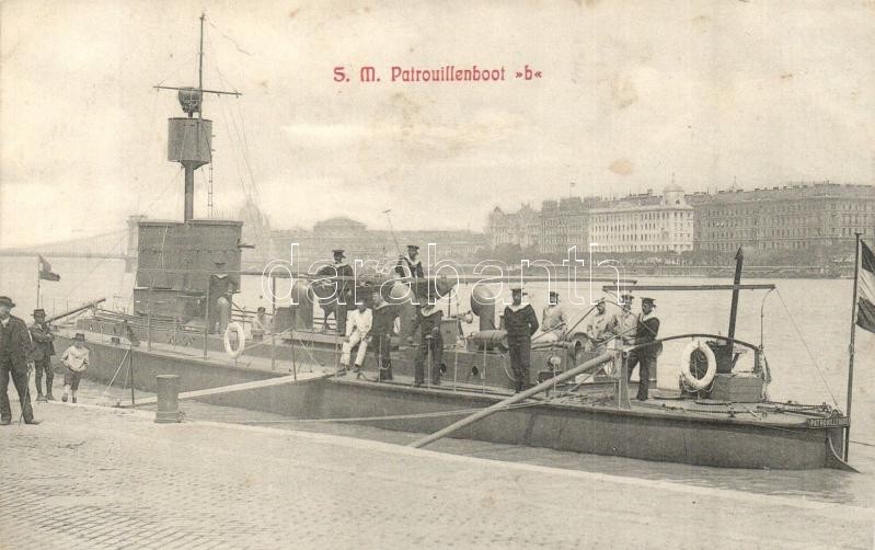 SMS "B" őrnaszád legénységgel a fedélzeten Budapesten. Dunai...