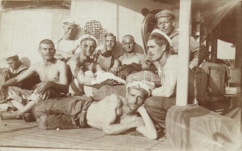 Description: SMS Kaiser Karl VI. osztrák-magyar VI. Károly-osztályú páncélos cirkálójának matrózai pihennek a fedélzeten / K.u.K. Kriegsmarine, resting mariners of SMS Kaiser Karl VI photo