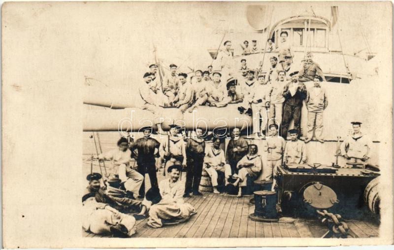 SMS Prinz Eugen, K.u.K. haditengerészet Tegetthoff-osztályú csatahajója matrózok csoportképével / Austro-Hungarian navy dreadnought battleship SMS Prinz Eugen, K.u.K. Kriegsmarine, mariners group photo (fl)