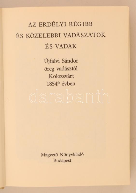 Újfalvi Sándor: Az erdélyi régibb és közelebbi vadászatok és vadak. Ma... https://www.darabanth.com/en/280-Online-auction/280.0/Books/Books-Hunting~35/Ujfalvi-Sandor-Az-erdelyi-regibb-es-kozelebbi-vadaszatok-es-vadak-Magyar-Hirmondo-Budap~II1440786