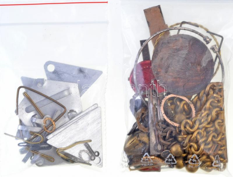 59db-os kitüntés és jelvény alkatrész tétel, közte tűk, akasztók és láncok, használt állapotban