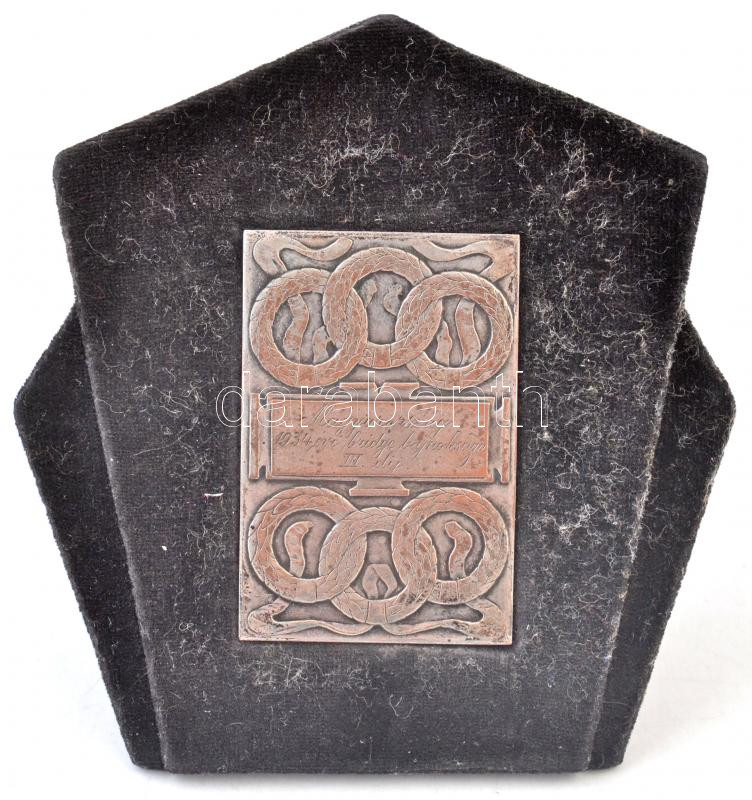1934. "Magyarország 1934. évi Bridge bajnoksága III. díj" ezüstözött Cu plakett, szövet talpon (40x60mm) T:2 kopott ezüstözés