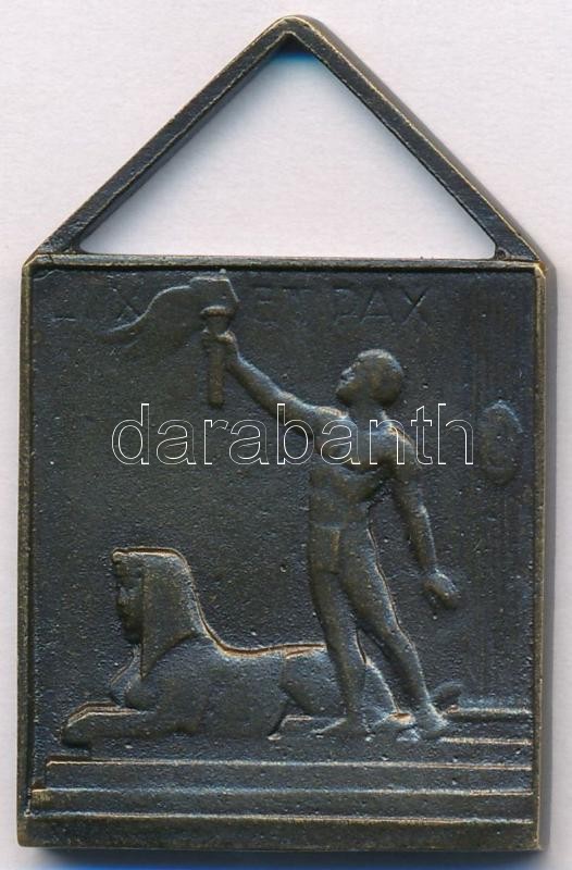 ~1910. "Kazinczy" páholy - Szabadkőműves Br plakett akasztóval (30x35mm) T:2-