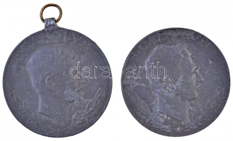 Description: 1918. "Sebesültek Érme" cink kitüntetés, mellszalag nélkül (2x) az egyik fül nélkül, az egyik peremen "GW". SZIGN.: R. Placht T:3 ph., ragasztónyom