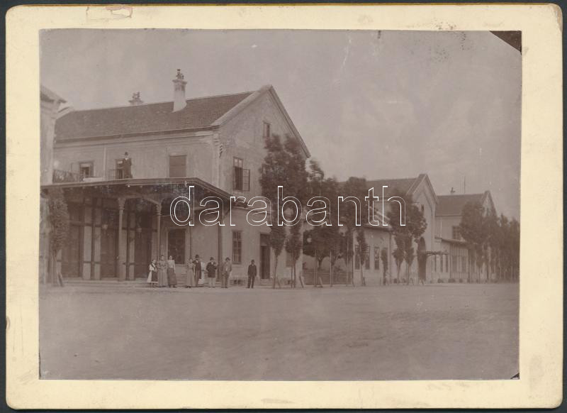 cca 1890 Budapest, a Józsefvárosi pályaudvar. Érdekes keményhátú fotó, a bejáratnál a Ludvig-család (?), 13×18 cm