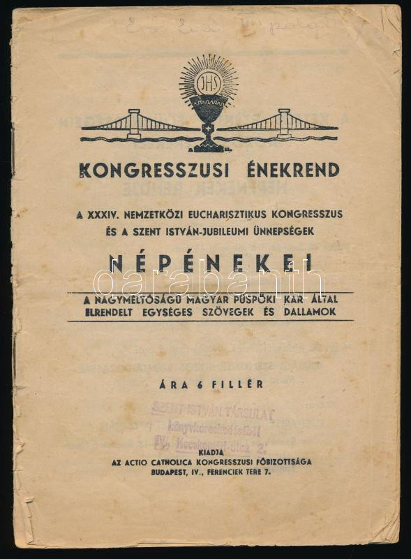 1937 Kongresszusi énekrend. A XXXIV. nemzetközi eucharisztikus kongres... https://www.darabanth.com/en/280-Online-auction/280.0/Other-collectibles/Printed-Materials~43/1937-Kongresszusi-enekrend-A-XXXIV-nemzetkozi-eucharisztikus-kongresszus-es-a-Szent-Istvan-jub~II1445128