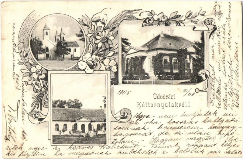 Kéttornyúlak (Pápa), templom, Kvassay-Zichy kastély, floral, kiadja Be...