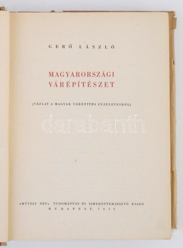 Gerő László: Magyarországi várépítészet. (Vázlat a magyar várépítés fe... https://www.darabanth.com/en/281-Online-auction/281.0/Books/Books-Architecture-Art~34/Gero-Laszlo-Magyarorszagi-varepiteszet-Vazlat-a-magyar-varepites-fejezeteirol-Bud~II1438462