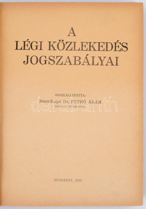 A légi közlekedés jogszabályai. Szerk.: Felső-Torjai Dr. Pethő Ádám. B... https://www.darabanth.com/en/281-Online-auction/281.0/Books/Books-Law~31/A-legi-kozlekedes-jogszabalyai-Szerk-Felso-Torjai-Dr-Petho-Adam-Budapest-1943-Korabel~II1448269