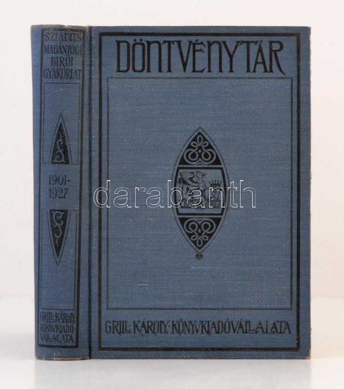 Description: Döntvénytár. A magánjogi bírói gyakorlat 1901-1927. Szerk.: Dr. Szladits Károly. Budapest, 1928, Grill Károly Könyvkiadóvállalata. Kiadói egészvászon kötés, kissé kopottas borítóval. Jó állapotban.