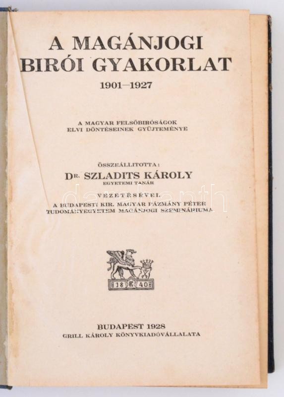 Döntvénytár. A magánjogi bírói gyakorlat 1901-1927. Szerk.: Dr. Szladi... https://www.darabanth.com/en/281-Online-auction/281.0/Books/Books-Law~31/Dontvenytar-A-maganjogi-biroi-gyakorlat-1901-1927-Szerk-Dr-Szladits-Karoly-Budapest-19~II1448212