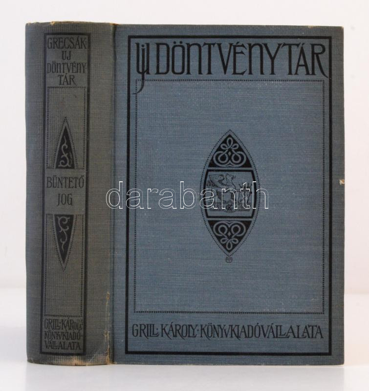 Description: Új Döntvénytár VIII. Büntető törvény. Sajtótörvény. Szerk.: Dr. Ráth-Végh István. Budapest, 1912, Grill Károly Könyvkiadóvállalata. Kiadói egészvászon kötés, kissé sérült gerinccel, kissé laza fűzéssel, egyébként jó állapotban.