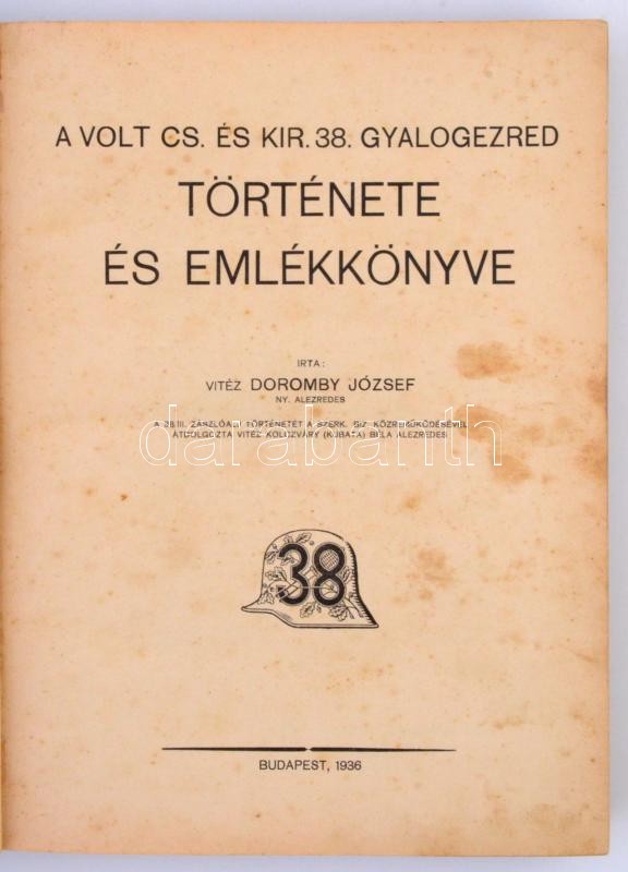 Vitéz Doromby József: A volt Cs. és Kir. 38. Gyalogezred története és ... https://www.darabanth.com/en/281-Online-auction/281.0/Books/Books-Military~33/Vitez-Doromby-Jozsef-A-volt-Cs-es-Kir-38-Gyalogezred-tortenete-es-emlekkonyve-Bp-1936~II1449531