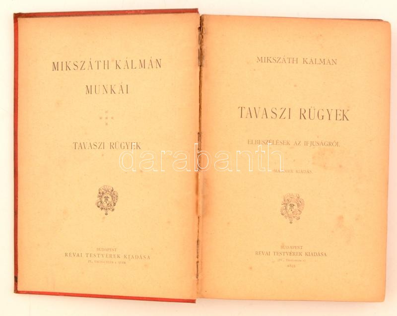Mikszáth Kálmán: Tavaszi Rügyek. Mikszáth Kálmán munkái. Budapest, 189... https://www.darabanth.com/en/281-Online-auction/281.0/Books/Books-Other-rarities~42/Mikszath-Kalman-Tavaszi-Rugyek-Mikszath-Kalman-munkai-Budapest-1893-Revai-Testverek-~II1418855