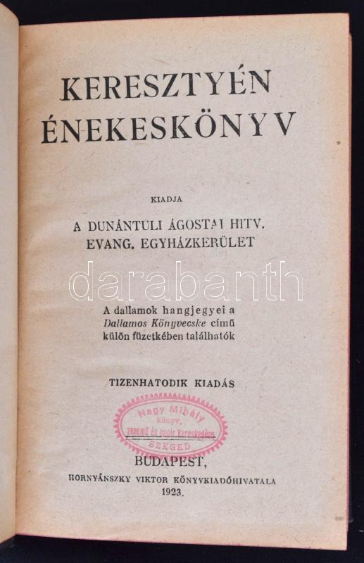 https://www.darabanth.com/en/281-Online-auction/281.0/Books/Books-Religion~39/Keresztyen-enekeskonyv-Kiadja-a-Dunantuli-agostai-hitvevangegyhazkerulet-Bp-1923-Horn~II1361310