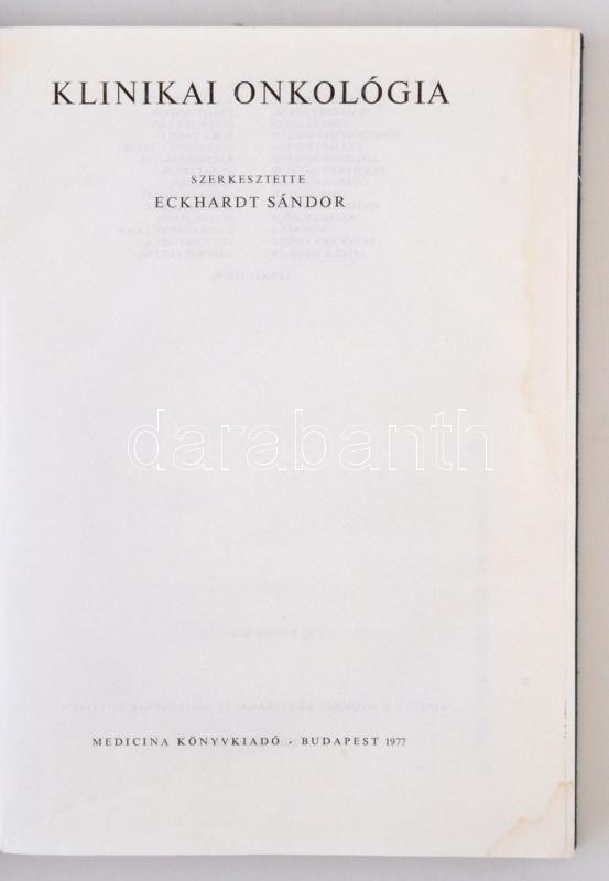 Eckhardt Sándor(szerk.): Klinikai onkológia. Bp., 1977, Medicina Könyvkiadó. Kiadói egészvászon kötés, kissé kopottas állapotban.