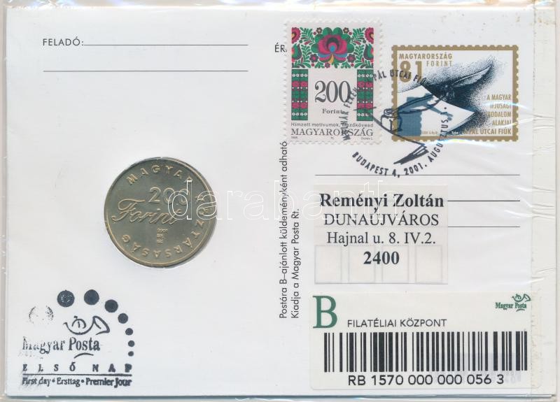 2001. 200Ft "Molnár Ferenc: A Pál utcai fiúk" érmés levelező...