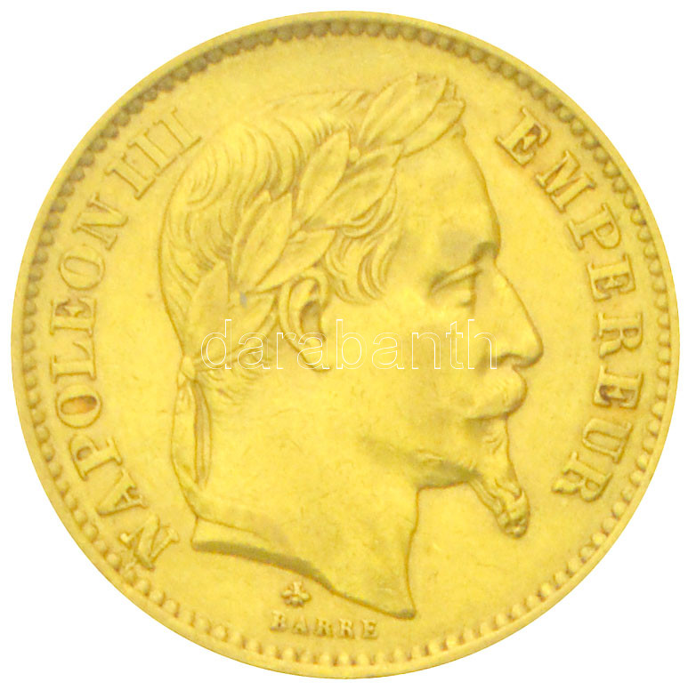 Franciaország / Második Császárság 1868A 20Fr Au "III. Napóleon&q... https://www.darabanth.com/en/281-Online-auction/281.0/Numismatics/Gold-coins-and-commemorative-medallions~300011/Franciaorszag-Masodik-Csaszarsag-1868A-20Fr-Au-III-Napoleon-6-42g0900-T2-apro-ph-~II1450655