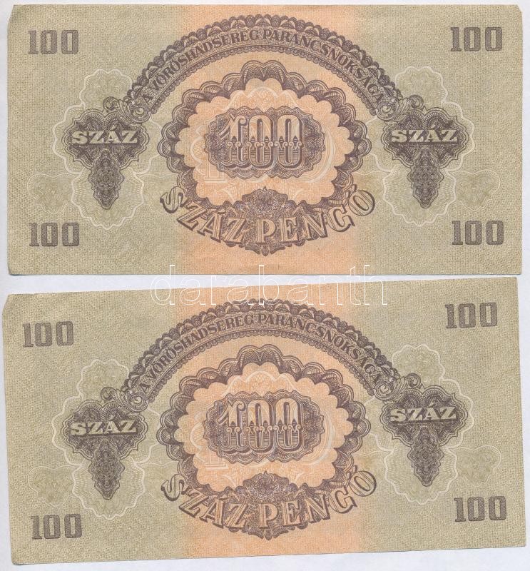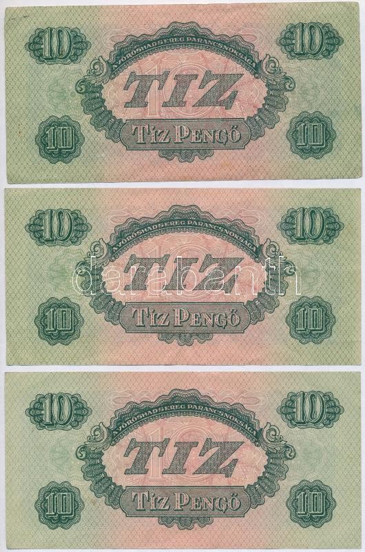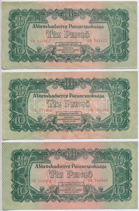 1944. 10P (3x) + 100P "A Vöröshadsereg Parancsnoksága" (2x) sorszámkövetők T:I--II