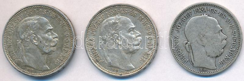 1893KB 1K Ag + 1914KB 1K Ag + 1915KB 1K Ag "Ferenc József" T:2,2-,3 kis patina