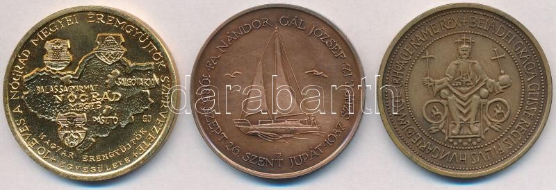 Description: Fritz Mihály (1947-) 1983. "MÉE Szeged / 800 éves Szeged" Br emlékérem (42,5mm) + Garamkeszi János (1936-) 1983. "MÉE Tíz éves a Nógrád megyei szervezet / Salgótarján 1983" sárgított Br emlékérem (42,5mm) + Lapis András (1942-) 1987. "MÉE Székesfehérvár - A magyarhoni vitorláshajózók első földkörüli útjának emlékére / Szent Jupát" Br emlékérem (42,5mm) T:1-,2 kis patina