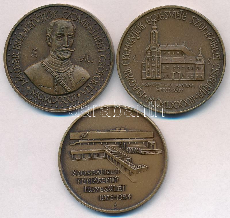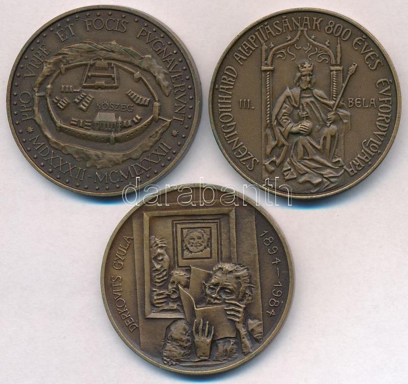 Kiss Sándor (1925-1999) 1982. "MÉE Szombathelyi Csoportja - Jurisich Miklós / Kőszeg" Br emlékérem (42,5mm) + 1983. "MÉE Szombathelyi Csoportja / Szentgotthárd alapításának 800 éves évfordulója" Br emlékérem (42,5mm) + 1984. "Derkovits Gyula 1894-1984 / Szombathelyi Képtárépítő Egyesület 1976-1984" Br emlékérem (42,5mm) T:1,1-