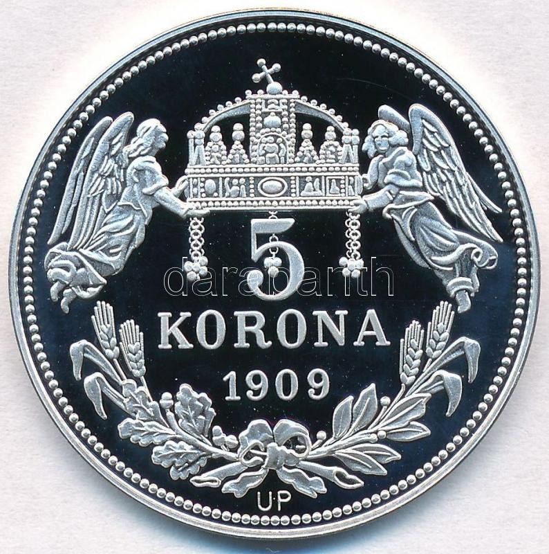 https://www.darabanth.com/en/281-Online-auction/281.0/Numismatics/Modern-restrikes-fantasy-coins~300010/DN-Kiralyi-koronak--Szent-Istvan-5-korona-1909-Ag-emlekerem-tanusitvannyal-19-90g0999~II1451653