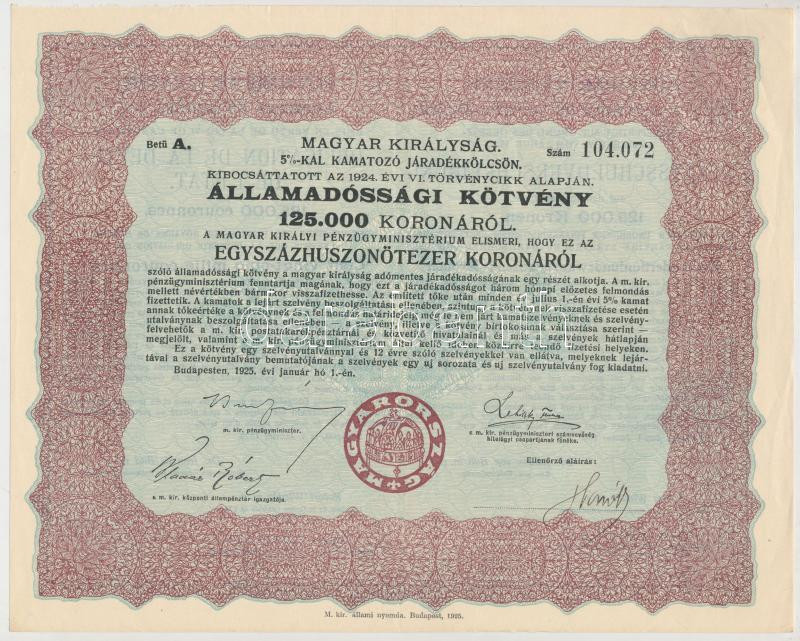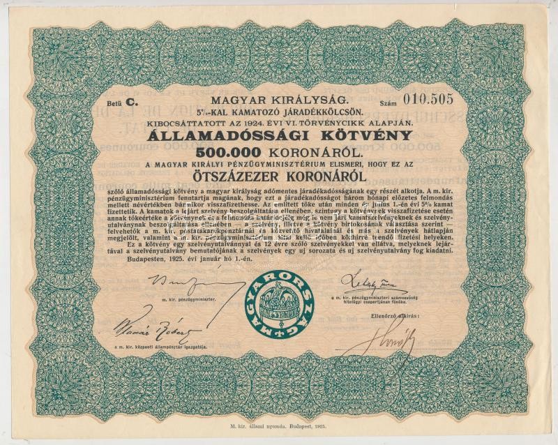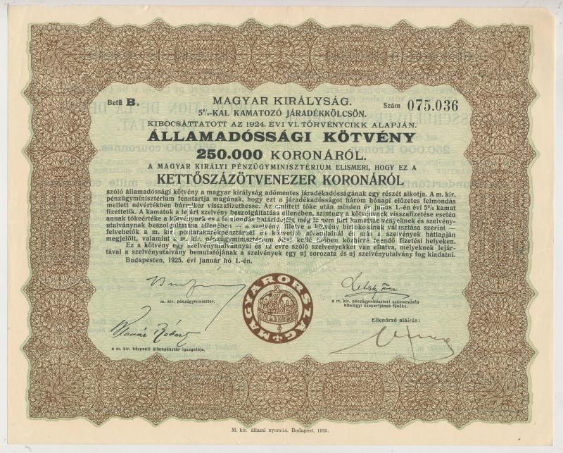 https://www.darabanth.com/en/281-Online-auction/281.0/Numismatics/Shares-and-Tickets~300005/Budapest-1925-Magyar-Kiralysag-525-kal-kamatozo-Jaradekkolcson-Allamadossagi-Kotveny-1~II1420899