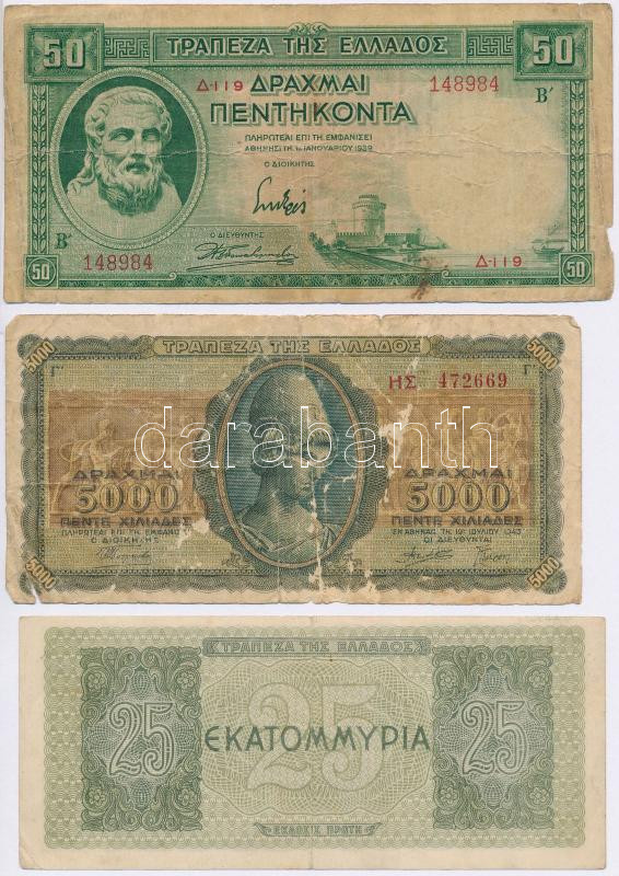 Görögország 1939. 50D + Görögország / Német-olasz megszállás 1943. 5000D + 1944. 25.000.000D T:III-IV