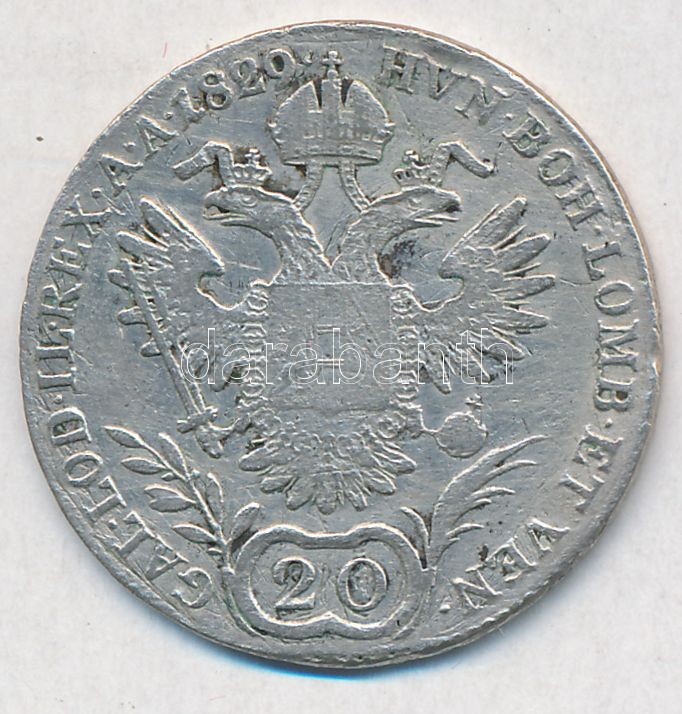https://www.darabanth.com/en/281-Online-auction/281.0/Numismatics/Worldwide-silver-and-metal-coins~300013/Ausztria-1829A-20kr-Ag-I-Ferenc-T2-3-k--Austria-1829A-20-Kreuzer-Ag-Franz-I-CVF-F-scratched~II1404967