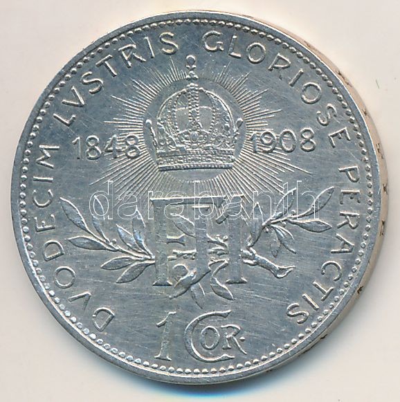 https://www.darabanth.com/en/281-Online-auction/281.0/Numismatics/Worldwide-silver-and-metal-coins~300013/Ausztria-1908-1K-Ag-Ferenc-Jozsef--Jubileum-T2--Austria-1908-1-Corona-Ag-Franz-Joseph--Jubi~II1418862