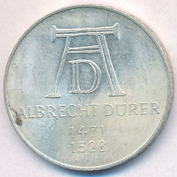 https://www.darabanth.com/en/281-Online-auction/281.0/Numismatics/Worldwide-silver-and-metal-coins~300013/NSZK-1971D-5M-Ag-Albrecht-Durer-T2-2-kis-ph-fo--FRG-1971D-5-Mark-Ag-Albrecht-Durer-CXF-V~II1446938