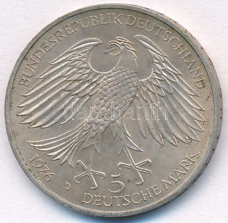 https://www.darabanth.com/en/281-Online-auction/281.0/Numismatics/Worldwide-silver-and-metal-coins~300013/NSZK-1976D-5M-Ag-Grimmelhausen-halalanak-300-evforduloja-T2--FRG-1976D-5-Mark-Ag-300th-Anni~II1448229