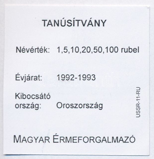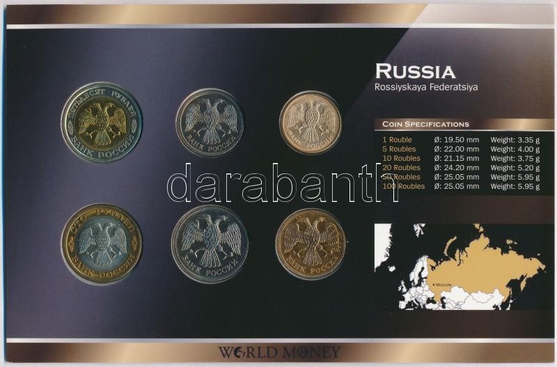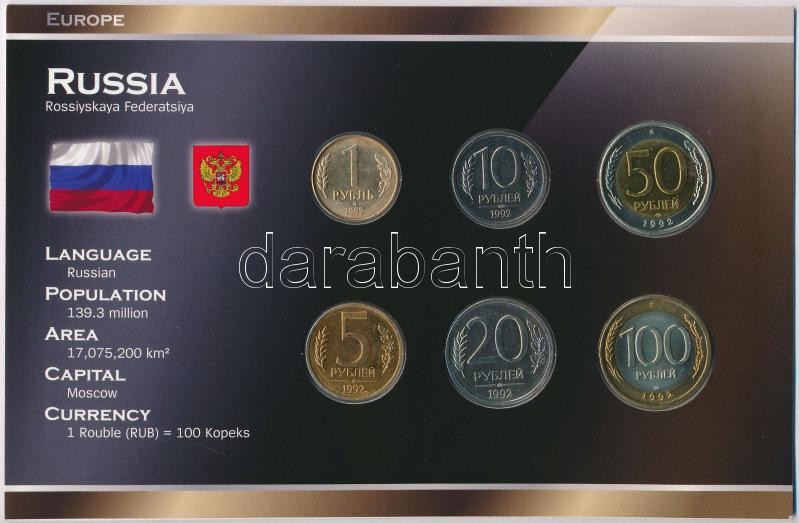 Oroszország 1992. 1R-100R (6xklf) forgalmi sor szettben, papírtokban T... https://www.darabanth.com/en/281-Online-auction/281.0/Numismatics/Worldwide-silver-and-metal-coins~300013/Oroszorszag-1992-1R-100R-6xklf-forgalmi-sor-szettben-papirtokban-T1-1---Russia-1992-1-Rouble~II1449984