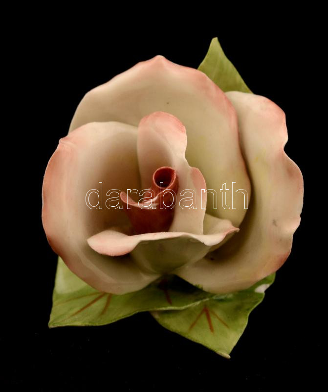 Aquincumi porcelán rózsa, kézzel festett, lepattanásokkal, jelzett, 6x...
