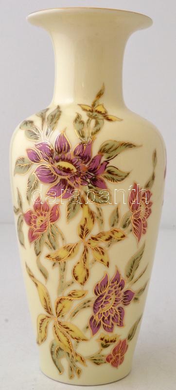 Zsolnay virág mintás váza, kézzel festett, jelzett, hibátlan, m:26,5 c...