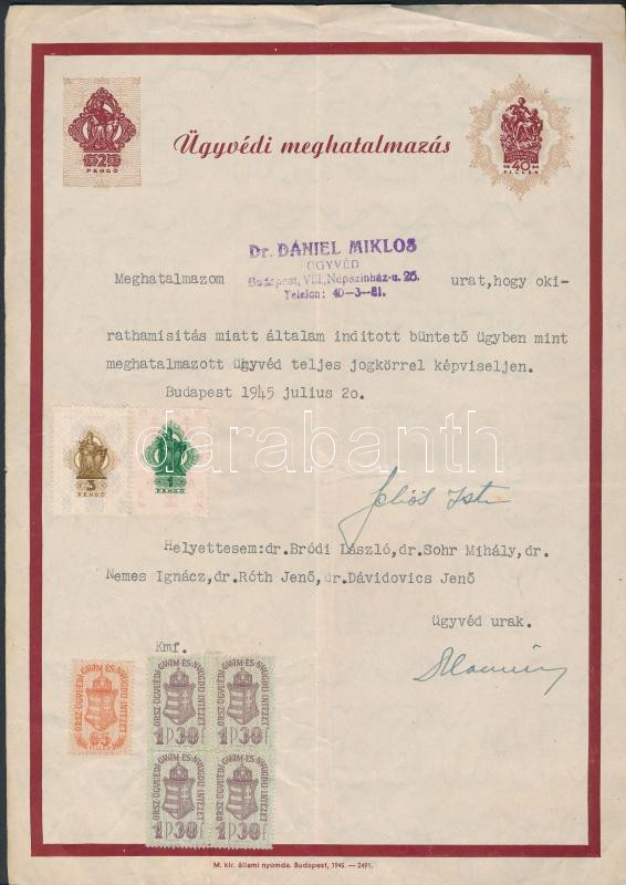 https://www.darabanth.com/en/281-Online-auction/281.0/Other-collectibles/Document-Stamps~15/1945-Ugyvedi-meghatalmazas-kulonfele-illetekbelyegekkel~II1448077