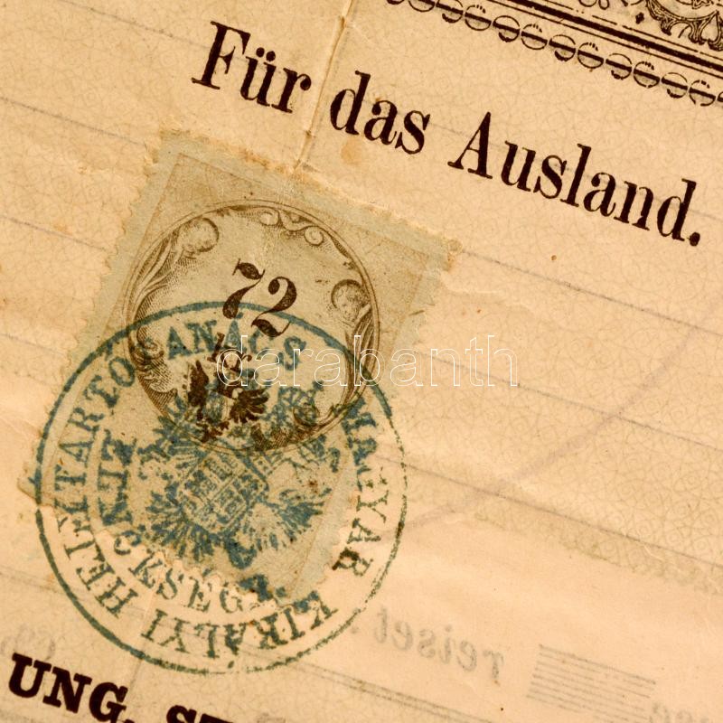 1862 Külföldre szóló útlevél marhakereskedő részére 72kr okmánybélyeggel / Passport issued for foreign countires