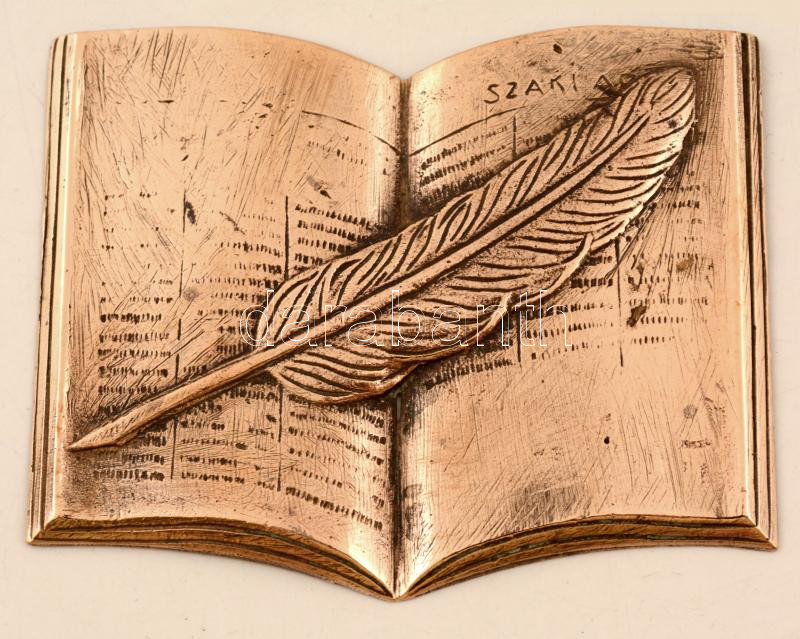 Könyv formájú bronz plakett. Jelzés nélkül. 9x7 cm