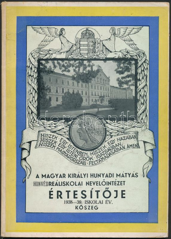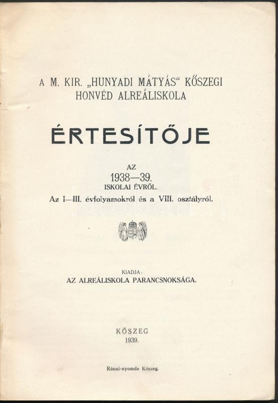 A M. kir. "Hunyadi Mátyás" Kőszegi Honvéd Alreáliskola értes... https://www.darabanth.com/en/281-Online-auction/281.0/Other-collectibles/Military~26/A-M-kir-Hunyadi-Matyas-Koszegi-Honved-Alrealiskola-ertesitoje-az-1938-39-iskolai-evro~II1451352