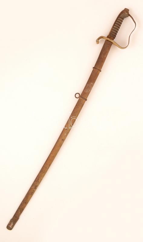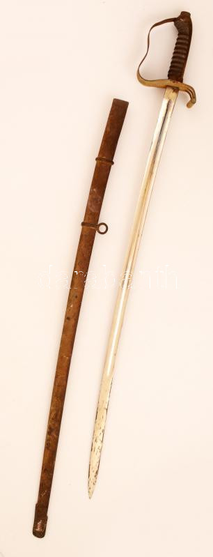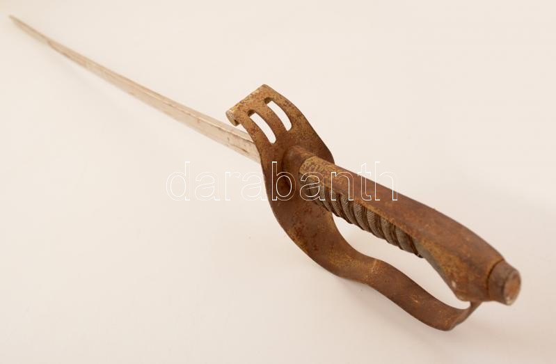 Régi díszkard, rozsdás hüvellyel és markolattal, a pengén kis lepattanásokkal, pengehossz: 81 cm, teljes hossz: 95,5 cm
