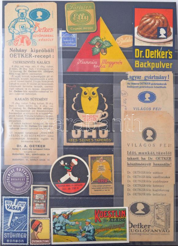 14 db klf reklám és pecsétbélyegei A4-es berakólapon (Oetker, Stürmer, stb.)