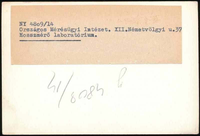 Országos Mérésügyi Intézet, Hosszmérő laboratórium, sajtófotó, hátoldalon feliratozva, 10x15 cm