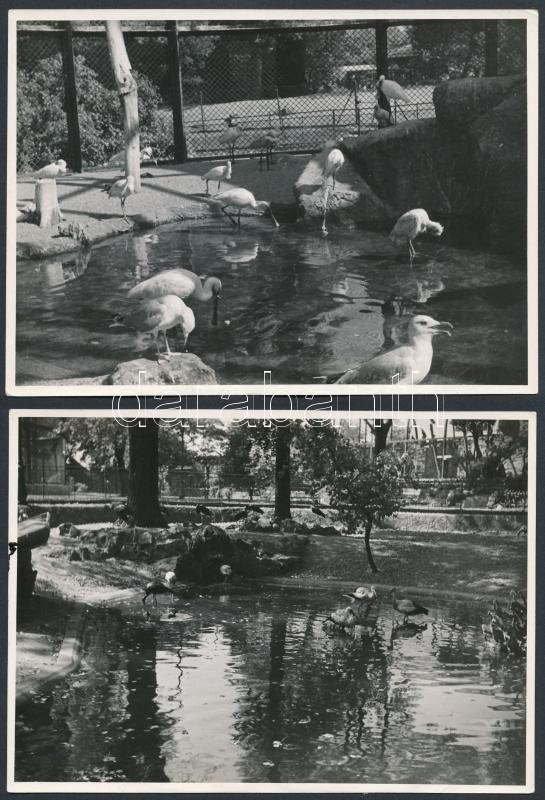 Sostarics Lajos (1896-1968): Séta az állatkerti tónál, 4 db fotó, hátoldalon jelzett, 13x17 cm