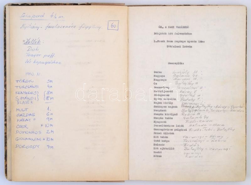 https://www.darabanth.com/en/281-Online-auction/281.0/Other-collectibles/Printed-Materials~28/1972-Az-Oz-a-nagy-varazslo-c-bab-darab-szovegkonyve-Ugyelo-peldany-Allami-Babszinha~II1452410