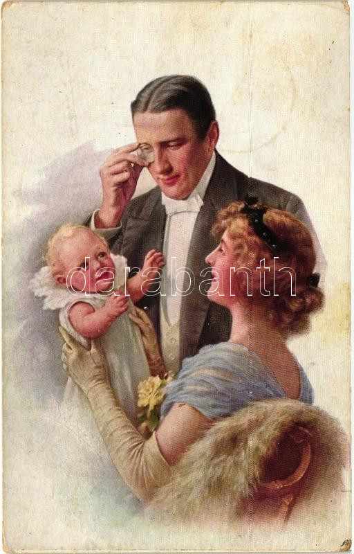 Family with baby, art postcard, M. Munk Vienne No. 868. artist signed ...